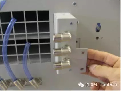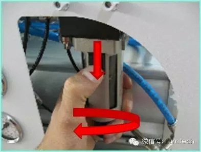 拆下過濾器外部連接管。向上按住街頭藍(lán)色部分,拔出連接管。