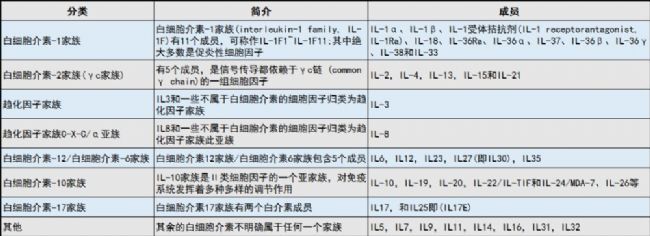 表1:白細(xì)胞介素家族分類