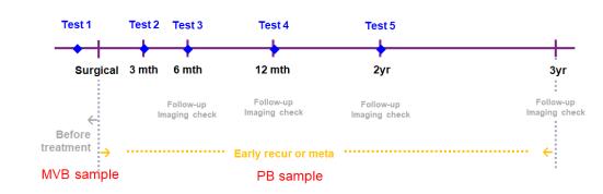 科學家設計的試驗流程如圖 3 所示。 手術前第 1 次取樣,為腸系膜靜脈血(Mesenteric Venous Blood, MVB);手術后在第 3、 6、 12、 24 個月進行第 2-5 次取樣,為外周血(Peripheral Blood, PB)。第 1 次取樣用于判斷患者的癌癥風險等級,對風險等級高的患者進行組合療法(如增加化療);第 2-5 次取樣用于監(jiān)測早期復發(fā)和轉移的患者,對 CTCs 陽性的患者會建議更頻繁的監(jiān)測和積極治療。
