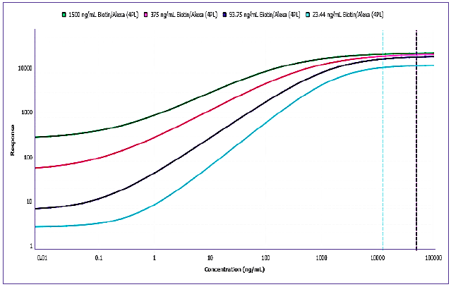 圖示3:Biotin-drug/AF-drug等摩爾滴定抗兔多抗呈陽性反饋,曲線設(shè)置12個(gè)點(diǎn),CV<20%