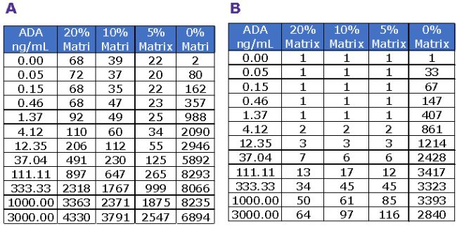 圖9:藥物耐受性檢測:結(jié)果顯示該實(shí)驗(yàn)降低了循環(huán)治療的耐受性,可檢出在0.125µg/mLMAb中約97.7ng/mL的ADA濃度