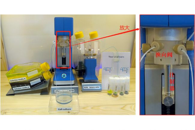 1.注射泵結(jié)合閥門控制實現(xiàn)序列進樣;