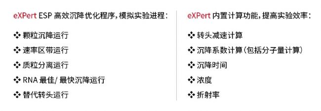 - 對于差速離心以及操作相對復(fù)雜的密度梯度離心方法,內(nèi)置的eXPert離心專家軟件可模擬不同實驗進程以及計算相應(yīng)實驗參數(shù)計算,幫助用戶在病毒分離時設(shè)計實驗與運行,提高實驗效率。