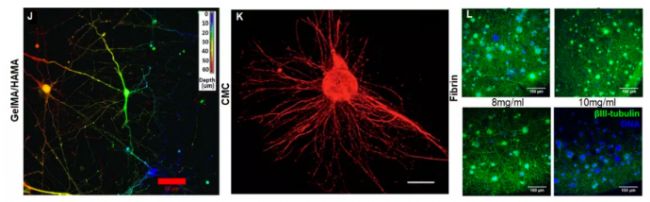 神經系統的疾病,比如阿爾茲海默癥,帕金森,癲癇等,影響了全球約1/6的人口,之前人們對其病因的起因和進展研究也因研究大腦原位的傳統技術的局限性而受到阻礙。新的技術和方法能夠利用實驗室中生長的3D打印的微型“類大腦”神經元系統來研究大腦(上普學術 | 微型腦打印為腦腫瘤治療提供突破口)。研究人員而無需采用活體動物,就可以研究神經元是如何交流和自我組織的。在“類大腦“等類器官模型的建立的過程中,被打印成類器官的細胞通常被包裹在水凝膠生物材料中。理想的生物材料是在三維環(huán)境中培養(yǎng)的目標組織的仿生,模擬目標組織的機械、結構、生化和擴散特性,同時保持與細胞的生物相容性。比如甲基丙烯酸透明質酸(methacrylated hyaluronic acid)——HAMA就是一種適合打印神經系統結締組織的細胞外基質的液態(tài)生物材料(生物墨水)。