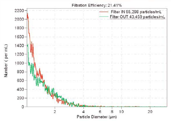 通過對(duì)比過濾前后的測(cè)試結(jié)果可以評(píng)估過濾效率,過濾掉的粒子數(shù)目占過濾前粒子數(shù)目的百分比即代表了過濾的效率。
