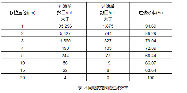 過濾過程同時(shí)也能通過特定的粒度范圍進(jìn)行監(jiān)測(cè),通常過濾掉的顆粒總數(shù)并不總能反映過濾的全貌,有時(shí)當(dāng)調(diào)整過濾流程時(shí)就需要設(shè)定某個(gè)粒度范圍作為參考的目標(biāo)。