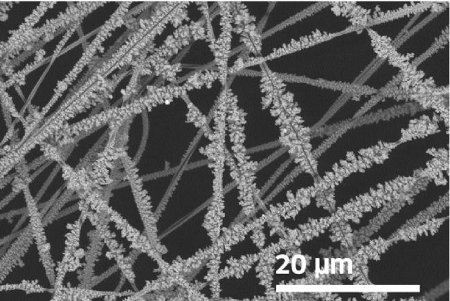 以碳基纖維材料為代表的纖維基材由于具備良好的導電性,是理想的電催化劑載體。但傳統(tǒng)的方法為將催化劑制成分散液,利用浸漬噴涂等方法負載在纖維表面。該方法的弊端也很明顯,噴涂的方式結合力較弱,且催化劑顆粒分布不均勻,很容易導致團聚。在纖維負載中,一個很常見的誤區(qū)是認為纖維表面負載的顆粒涂層越厚越好,但在實際催化反應中,只有表層的顆粒以及分散性較好的小顆粒作為活性位點發(fā)生反應。因此,保證纖維表面顆粒的“島狀”分布,對于促進催化效果有積極意義。