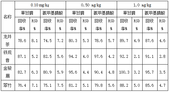 草甘膦(GLY)是一種高效、低毒、廉價的內(nèi)吸傳導(dǎo)型廣譜滅生性除草劑,被廣泛施用于茶園等農(nóng)業(yè)生產(chǎn)中。隨著草甘膦的廣泛使用,其在茶葉、水果等植物源食品中殘留量的檢測越來越受到關(guān)注。草甘膦及其代謝物氨甲基膦酸具有極性強、易溶于、難溶于各種有溶劑,這給常規(guī)檢測帶來了極大的困難和挑戰(zhàn)。