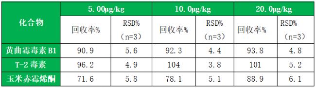 本實驗參考標(biāo)準(zhǔn)NY/T 2071-2011,對樣品進(jìn)行提取,采用226多功能凈化柱進(jìn)行凈化處理,建立了液相色譜-串聯(lián)質(zhì)譜檢測飼料中黃曲霉毒素B1、玉米赤霉烯酮和T-2毒素的方法。