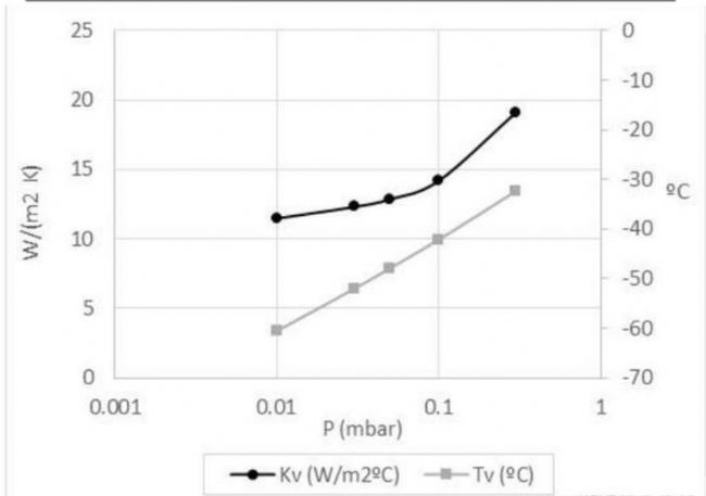 它不取決于產(chǎn)品,而是取決于容器(西林瓶)和凍干支架技術(shù)性能。非常依賴于壓力,當(dāng)壓力降低,西林瓶和凍干支架之間殘留的空氣或升華的水分子減少,同時(shí)對流減少熱交換也減少。如下實(shí)驗(yàn)數(shù)據(jù)圖: