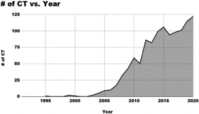 目前在臨床上使用較多的是間充質(zhì)干細(xì)胞治療(干細(xì)胞的分類可以查看我們之前的文章)。根據(jù)世界臨床試驗(yàn)中心clinicaltrials.gov官網(wǎng)的數(shù)據(jù)顯示,自1995年報(bào)告第一個(gè)間充質(zhì)干細(xì)胞臨床試驗(yàn)以來,每年干細(xì)胞治療的臨床試驗(yàn)都在大幅度增加,并且在近年來呈現(xiàn)出爆發(fā)的趨勢(shì)。