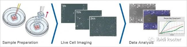 傷口愈合測定/遷移測定的最具特征的讀數(shù)是細(xì)胞覆蓋區(qū)域(間隙閉合)隨時間的變化。進(jìn)行傷口愈合和遷移試驗是一個簡單的過程: