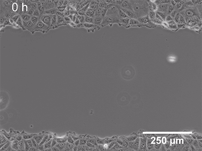 通過活細(xì)胞成像或在不同時間點拍照來監(jiān)測細(xì)胞遷移到間隙的過程。
