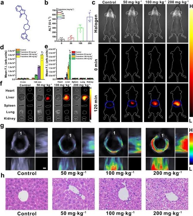 圖7. 納米探針BTPE-NO2@F127在曲唑酮誘導(dǎo)肝損傷小鼠中的應(yīng)用