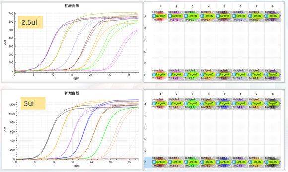 從圖2中可以看出,同樣試劑量的情況下,到達(dá)檢測器的信號強度,使用白管明顯高于透明管。因此相比于透明管,使用白管可明顯提高檢測器檢測到的信號強度,提高qPCR數(shù)據(jù)的靈敏度。