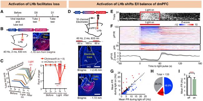 圖6.LHb激活改變了dmPFC的興奮/抑制平衡并促進(jìn)社會地位下降
