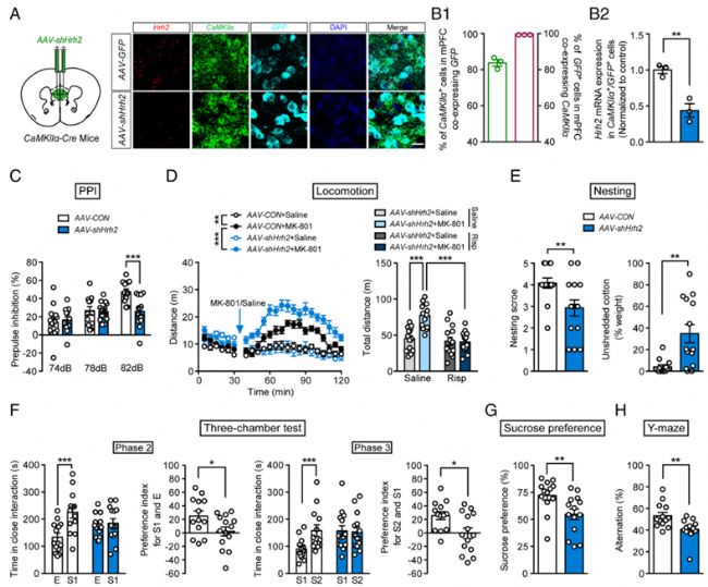 圖7.前額葉皮層谷氨酸能神經(jīng)元H2R缺失可誘發(fā)小鼠精神分裂癥樣行為