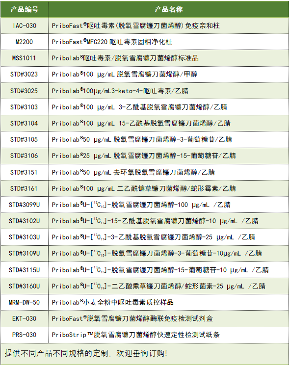 普瑞邦助力嘔吐毒素檢測(cè)產(chǎn)品(部分)