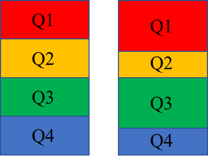 圖1. JCR分區(qū)示意圖:左圖為往年的分區(qū)示意圖(按25%均勻分區(qū)),右圖為最新分區(qū)示意圖(分區(qū)不再均勻)