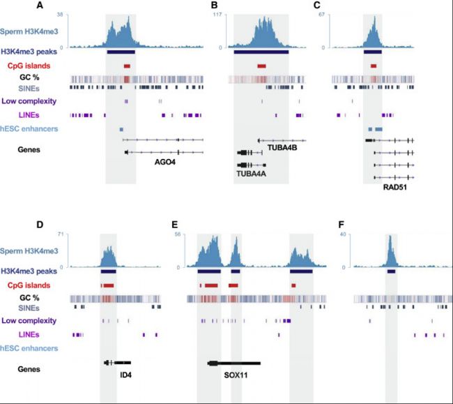 圖4:人類精子中H3K4me3和DNA甲基化譜