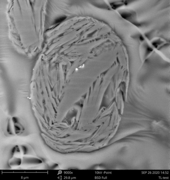 鋰電池負極石墨顆粒——使用 離子研磨儀切開負極材料粉末顆粒(飛納臺式掃描電鏡拍攝)