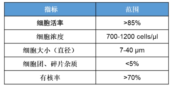 表2 高質量單細胞懸液質控標準
