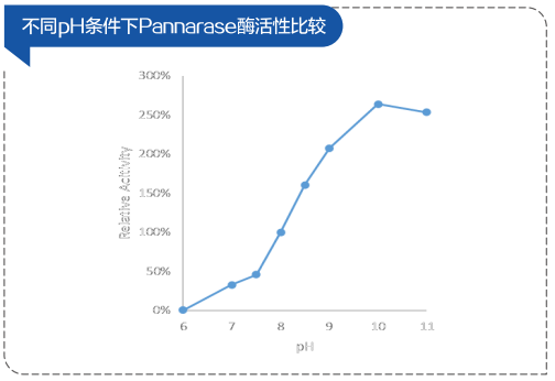 不同PH條件下酶活檢測圖經(jīng)檢測,Pannarase酶活性最適pH為8.0-11.0
