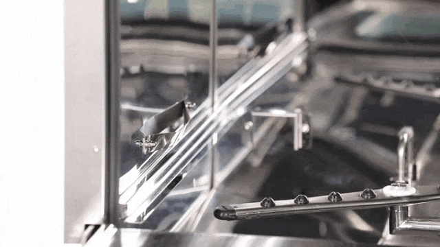 3.高效的循環(huán)清洗系統(tǒng):采用歐洲進(jìn)口品牌循環(huán)泵,水循環(huán)量≥800L/min,扇葉耐高溫處理,可在 93℃下工作基本無衰減;兩層清洗采用兩路平行供水,中央分水的清洗結(jié)構(gòu),確保兩層清洗籃架以及每個(gè)清洗籃架清洗條件達(dá)到完全一致。內(nèi)置雙層 360°旋轉(zhuǎn)噴臂,形成無死角扇形水幕,全面消除清洗死角。