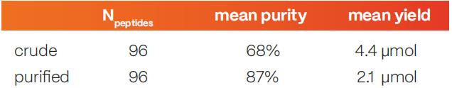 使用 PEC 技術(shù)可使 96 種肽的平均純度提高 19%(表 1)。