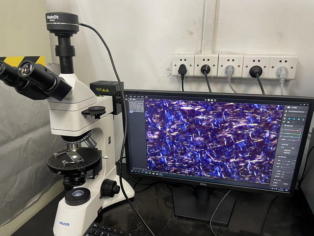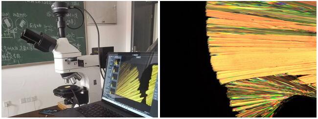 偏光顯微鏡MP41搭配高溫?zé)崤_,觀察液晶材料