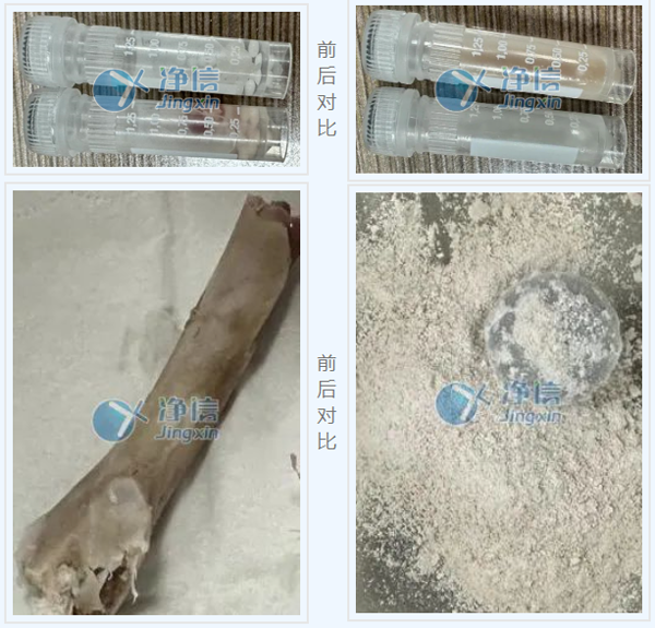 與實(shí)驗(yàn)前對(duì)比,組織塊成均勻漿狀,骨頭呈細(xì)膩粉末狀。在生物提取實(shí)驗(yàn)中,我們需要對(duì)樣品進(jìn)行研磨,研磨的方式一般可分為干磨和濕磨,但無(wú)論哪一種方法,它最后呈現(xiàn)的效果需要足夠均勻和細(xì)膩才能保證后續(xù)提取實(shí)驗(yàn)的成功率。本實(shí)驗(yàn)中的樣品均已達(dá)到實(shí)驗(yàn)要求,可用于后續(xù)提取實(shí)驗(yàn)。