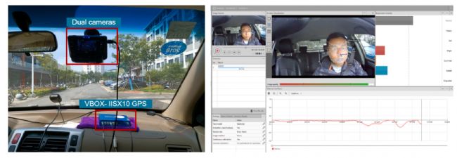 實驗選擇在駕駛員的正常工作時間進行測試,有利于駕駛員迅速進入正常的駕駛狀態(tài)。實驗設(shè)備包括VBOX- IISX10 GPS和雙攝像頭(前置和后置),分別安裝在車輛前儀表盤和擋風玻璃上(圖1),以測量高精度的車輛運動學(xué)數(shù)據(jù),如位置、速度、加速度等,以及記錄司機的面部表情。使用諾達思的面部表情分析系統(tǒng)(FaceReader)分析司機的面部表情以獲得情緒數(shù)據(jù)(Iridiastadi, 2019)。