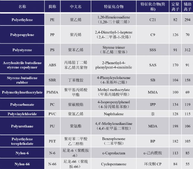 12種微塑料及特征裂解產(chǎn)物信息一覽