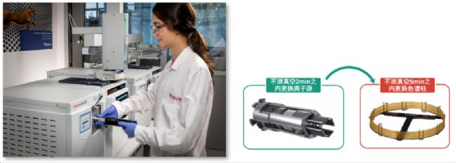專利真空鎖技術(shù),可在兩分鐘內(nèi)更換離子源,快速恢復(fù)離子源狀態(tài),方便使用。更可在數(shù)分鐘內(nèi)無需卸真空完成色譜柱的更換,效率倍增。