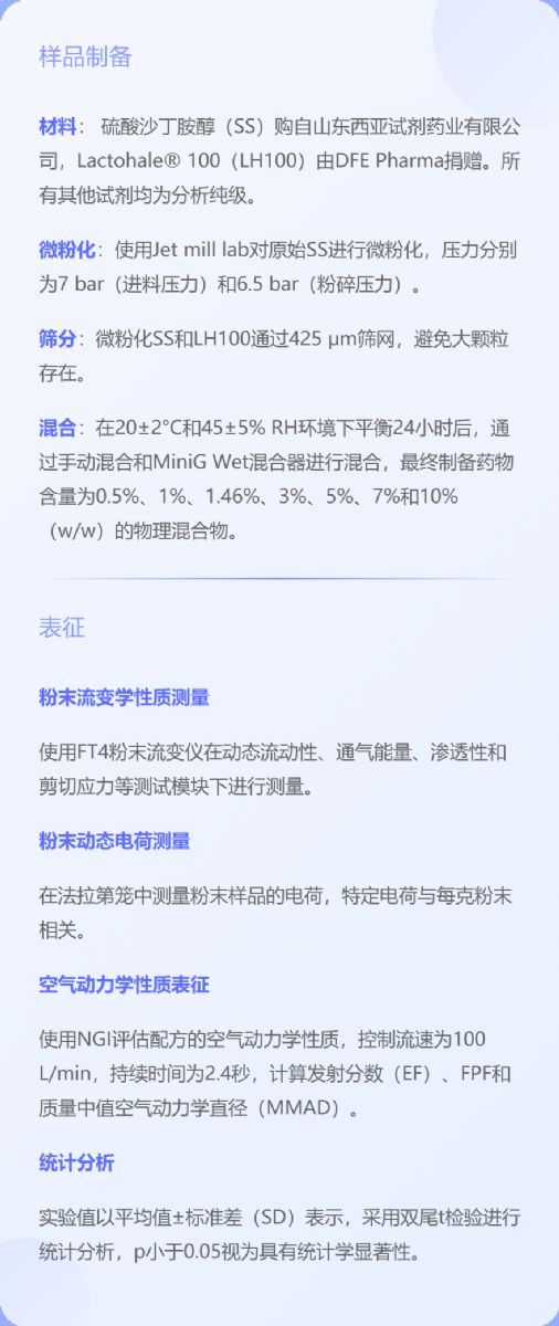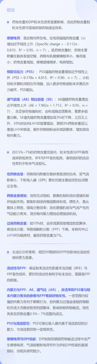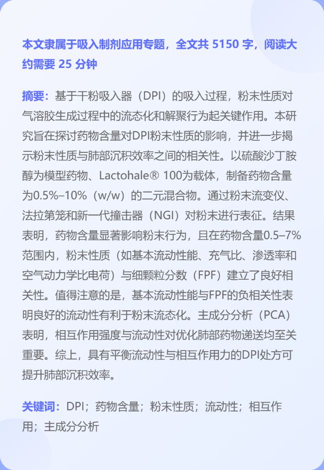 吸入藥物應(yīng)用專題|探究藥物含量對干粉吸入劑( DPI )粉末性質(zhì)的影響及肺部藥物沉積的潛在預(yù)測