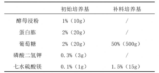 初始培養(yǎng)基和補(bǔ)料培養(yǎng)基,由預(yù)實(shí)驗(yàn)(培養(yǎng)189h,蝦青素產(chǎn)量為42.91mg/L)結(jié)果優(yōu)化獲得。如表1所示。