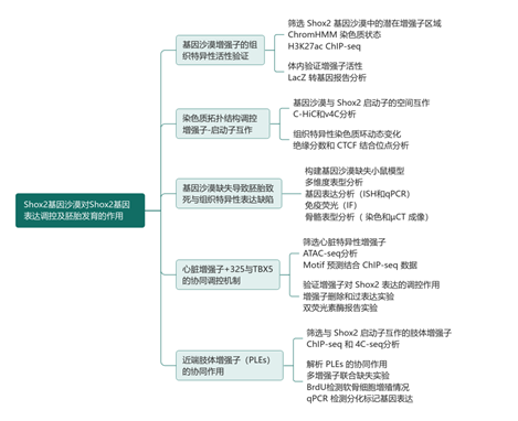 Shox2基因沙漠是關鍵的順式調(diào)控區(qū)域,編碼一系列組織特異性增強子,協(xié)調(diào)調(diào)控Stylopod 形成、顱面模式形成和心臟起搏器依賴的胚胎發(fā)育進程。其增強子的組織特異性和分布模式,以及染色質拓撲結構對理解先天性異常的發(fā)病機制具有重要意義,為后續(xù)研究提供了理論基礎和方向。