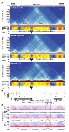 圖2. 在不同組織中調(diào)控Shox2的3D染色質結構。