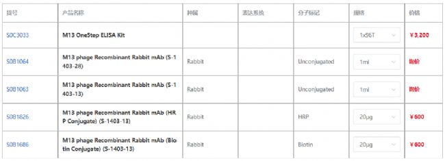 M13 OneStep ELISA Kit(貨號(hào):S0C3033)