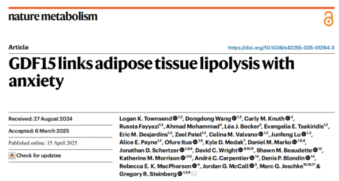 參考文獻(xiàn):Townsend, L.K., Wang, D., Knuth, C.M. et al. GDF15 links adipose tissue lipolysis with anxiety. Nat Metab (2025). https://doi.org/10.1038/s42255-025-01264-3