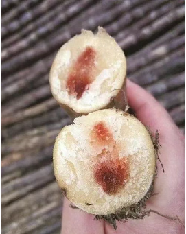 看果肉:正常甘蔗呈乳白色,霉變后發(fā)黃、發(fā)紅或有褐色斑點(diǎn)。