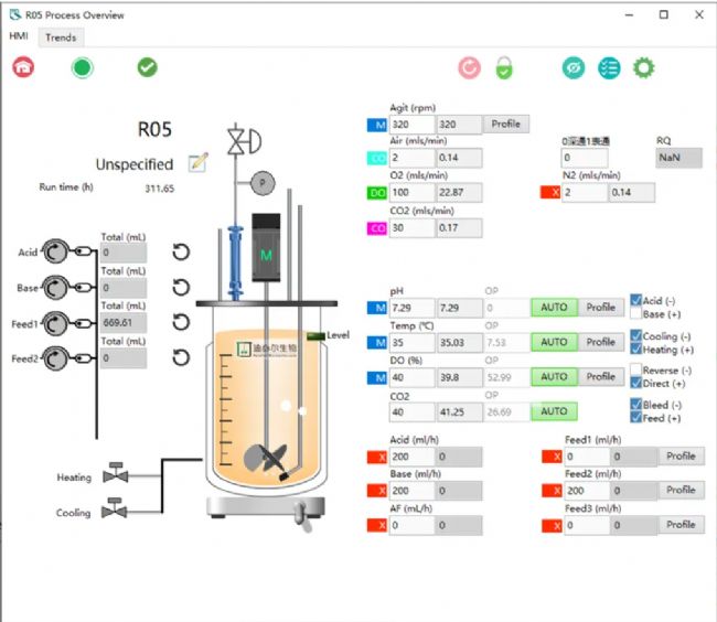 隨后,通過Air和CO₂與CO₂電極級聯(lián)控制,實(shí)現(xiàn)反饋控制,將培養(yǎng)過程中的pCO₂控制在設(shè)定值附近。最終實(shí)現(xiàn)pCO₂全過程可監(jiān)控,可控制,為研究人員的工藝優(yōu)化提供新的研究方向。