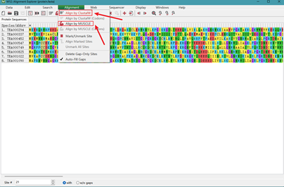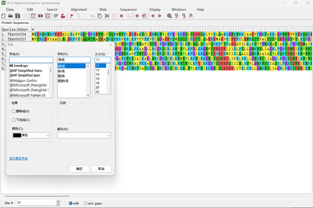 (1)多序列比對(Multiple Sequence Alignment):點(diǎn)擊“Alignment”→“Align by ClustalW”或“Align by MUSCLE”,軟件將快速完成比對。