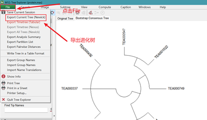 (1)保存樹文件:點(diǎn)擊“File”→“Export Current Tree (Newick)”,選擇“.nwk”格式,方便后續(xù)用其他軟件編輯。