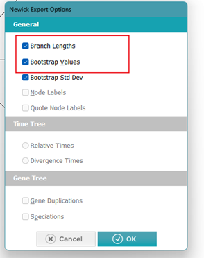 保存選項(xiàng)可以選擇是否保留分支長度和自展值,建議都勾選上。