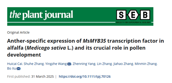 Cai H, Zhang S, Wang Y, Yang Z, Zhang L, Zhang J, Zhang M, Xu B. Anther-specific expression of MsMYB35 transcription factor in alfalfa (Medicago sativa L.) and its crucial role in pollen development. Plant J. 2025 Apr;122(1):e70126.