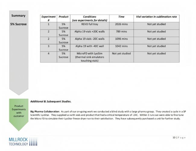 與大型制藥公司合作進(jìn)行盲測(cè),驗(yàn)證MicroFD裝置的實(shí)際應(yīng)用效果。實(shí)驗(yàn)對(duì)象為具臨界溫度-24°C的產(chǎn)品,在三次運(yùn)行后成功微調(diào)MicroFD以模擬SP Scientific LyoStar凍干機(jī)的運(yùn)行,最終客戶購(gòu)買該設(shè)備進(jìn)行進(jìn)一步研究,證明了MicroFD技術(shù)的實(shí)用性和可靠性。