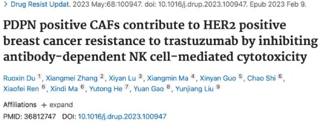 使用單細胞測序技術,研究發(fā)現(xiàn)了一種新的PDPN陽性CAF亞群,這種細胞亞群在耐曲妥珠單抗腫瘤組織中顯著富集。