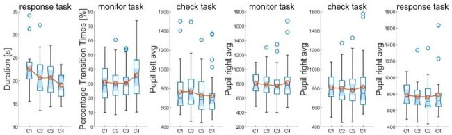 圖4. 箱形圖顯示了在工作表現(xiàn)、態(tài)勢感知、工作負載和工作記憶方面的結果