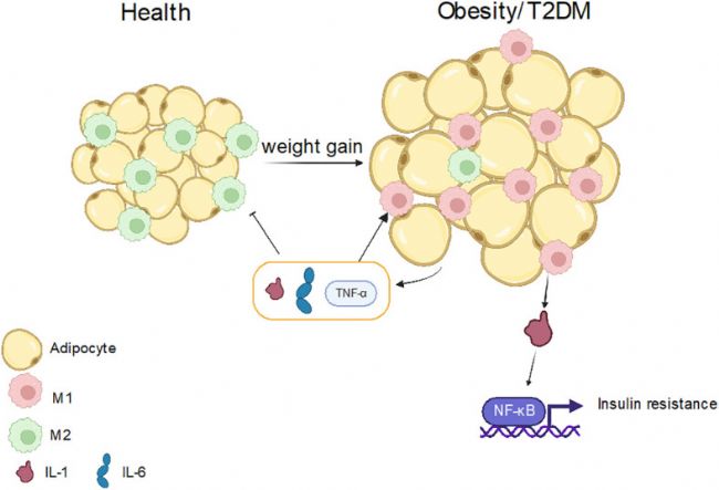 圖5. 巨噬細胞極化在肥胖和 T2DM 中的作用